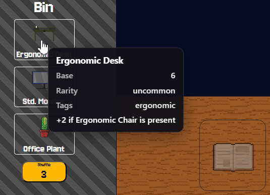 Items have underlying synergies that add bonus score to the end of the round, this is the key to making the best desk!