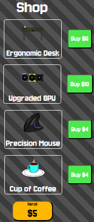 If the player has enough money, they can reroll the shop to get new items to buy.